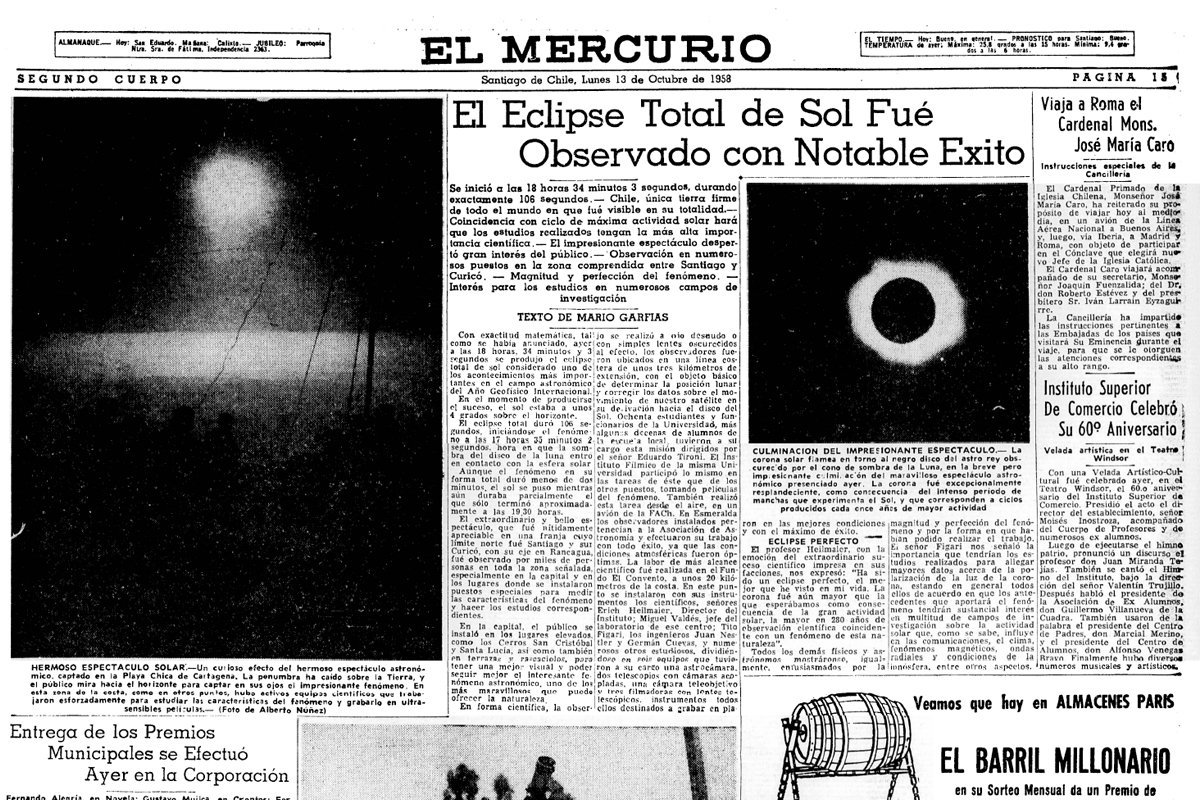 Junto a Vida, Ciencia y Tecnología de El Mercurio @VCT_ElMercurio revisamos fotografías y publicaciones sobre los eclipses totales de Sol ocurridos en el país, de 1958 a 2010.#EclipsesChile ¡Sigue el hilo!pic.twitter.com/wola3Dkvc2