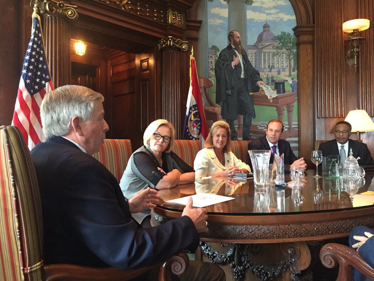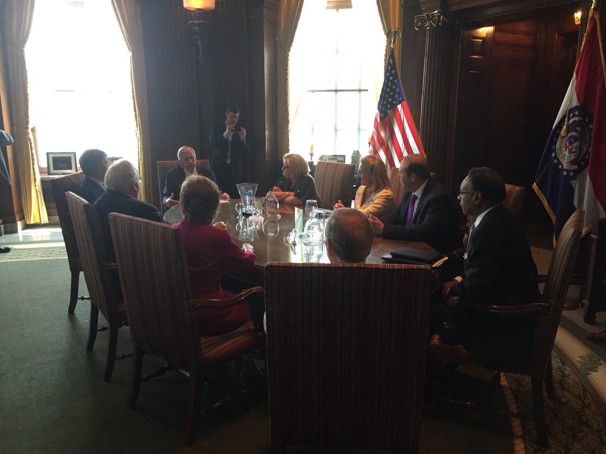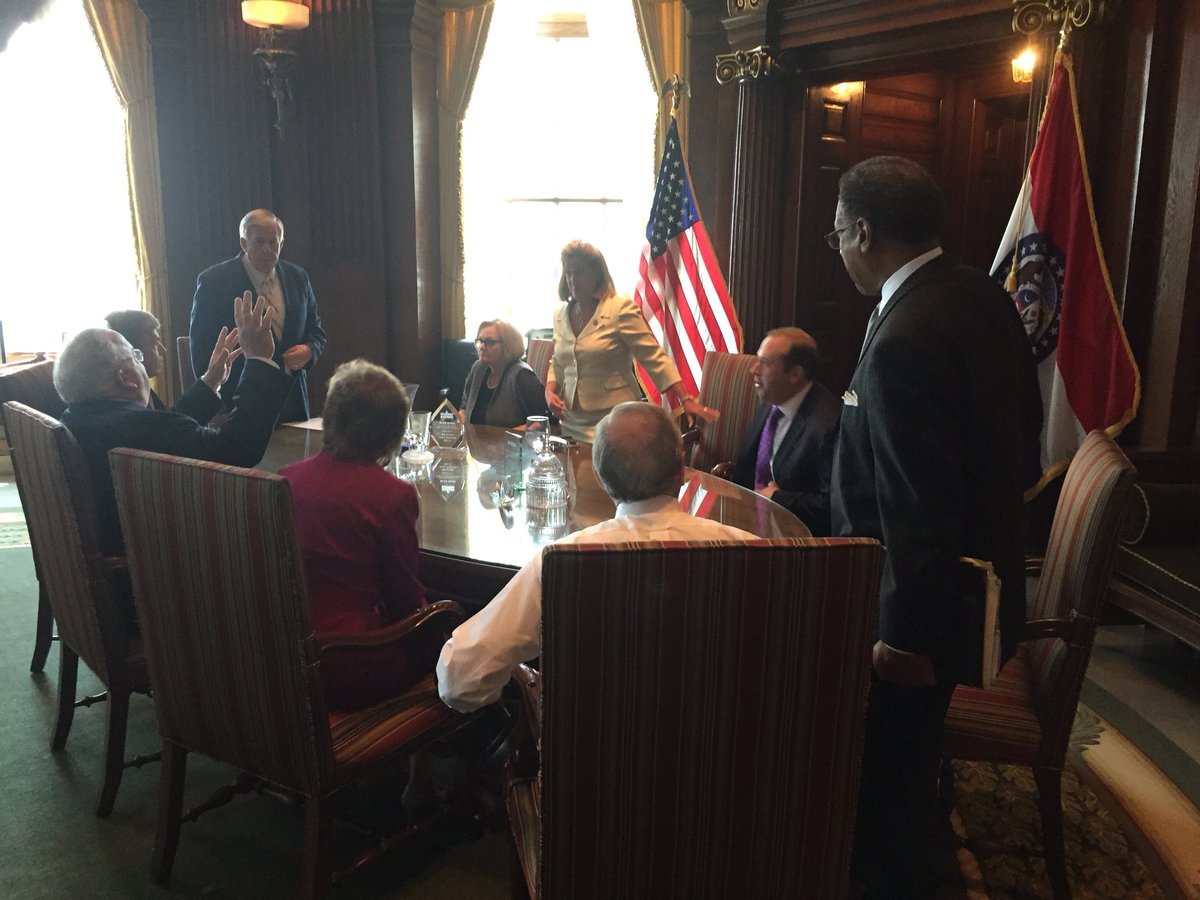 Most of Missouri’s congressional delegation sitting down with @mikeparson right now. Meeting expected to last about 30mins. Press not inside for meeting, but allowed to take pics before. #moleg #mogovpic.twitter.com/s3HYlr1Vcc