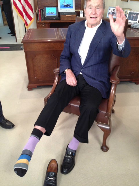 RT @dgjackson: Apparently President Bush loves colorful socks. He gave the Gov a pair too. #WhoKnewpic.twitter.com/1aAyadfS