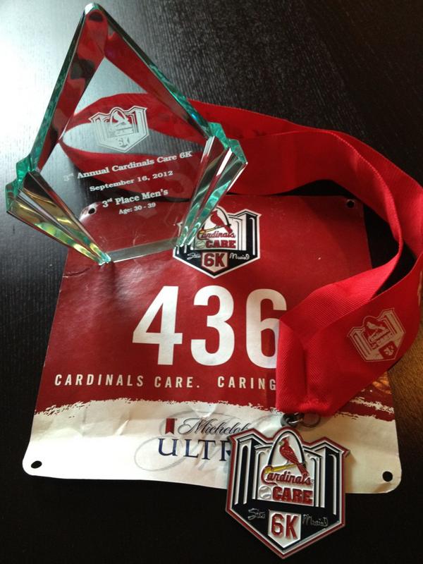 Congrats! #cantstopwontstop RT @RichChrismer: Took 3rd in my age group, 8th overall, in the @CardinalsCare 6K.pic.twitter.com/ZakuJ37v