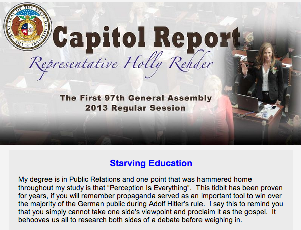 Lawmaker notes Hitler's propaganda campaign in criticizing @GovJayNixon's #HB253 PR blitz http://bit.ly/19qFFr4 pic.twitter.com/MWMkpo2vFE