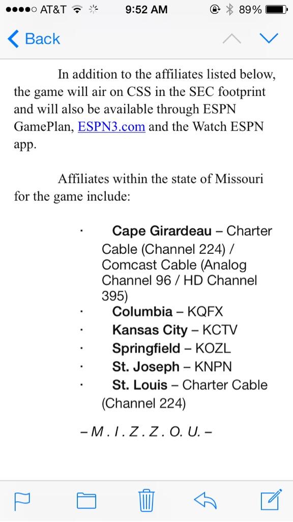 Tuning in to #Mizzou v. #Vanderbilt this weekend? Here's where you can watch it in Missouri:pic.twitter.com/d0lZRHudim