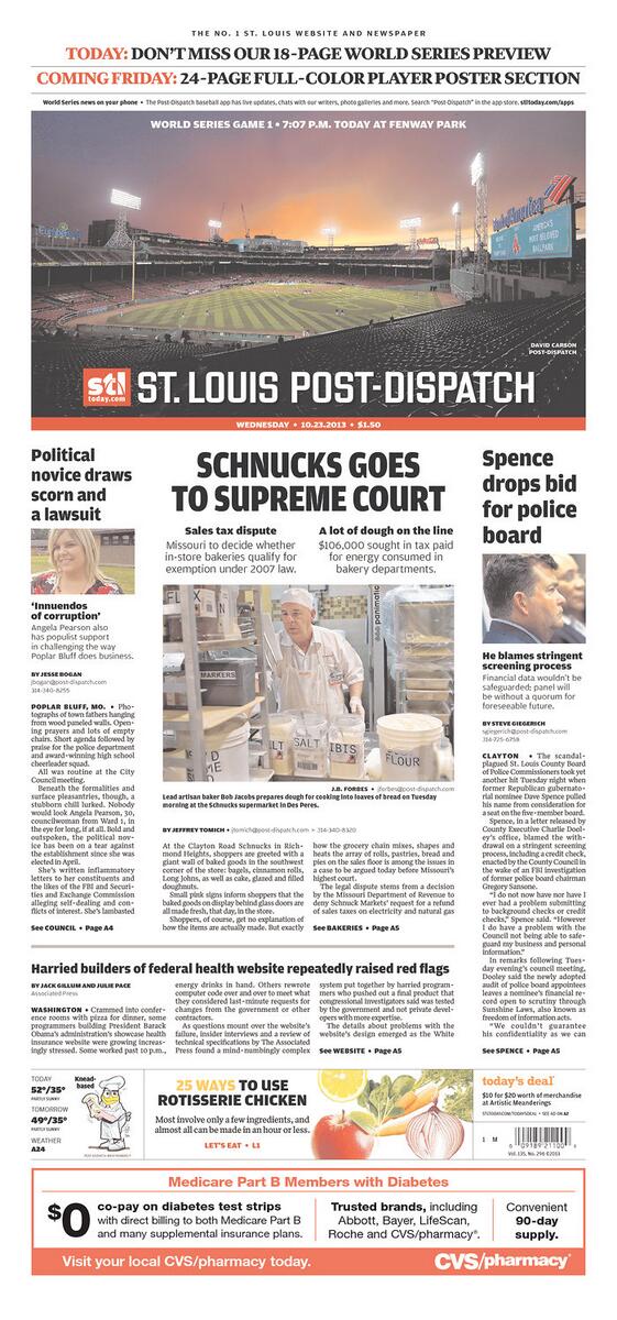 Beautiful shot of Fenway on today's cover of today's St. Louis Post Dispatch. Ready for a @Cardinals win tonight!pic.twitter.com/r2TxQDVI5N
