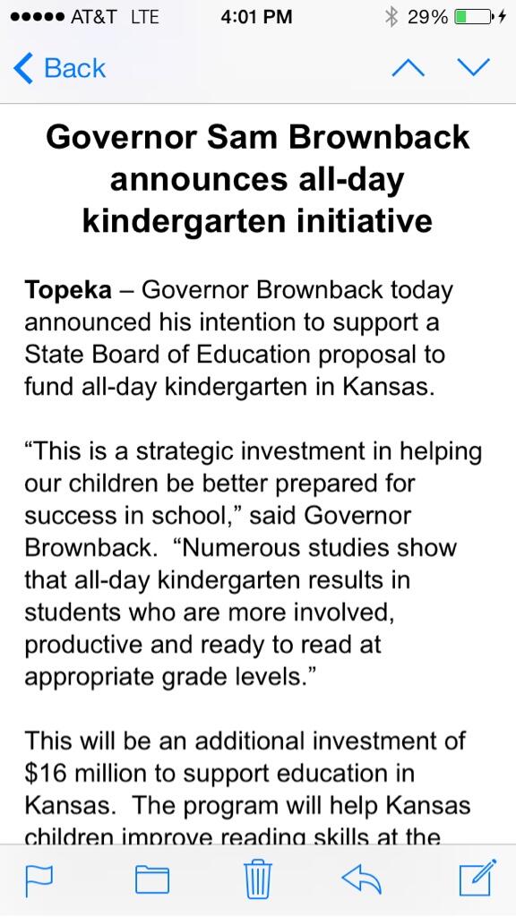 Fun fact: #kansas doesn't currently have all day kindergarten. Sam Brownback is on it:pic.twitter.com/HFNNELXkOA
