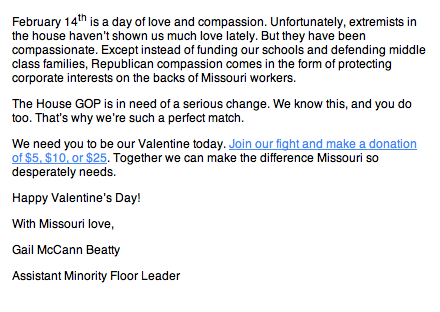 .@MOHouseDems just asked me in to be their Valentine. Most of my other Valentines are more subtle about money… #MOLegpic.twitter.com/JFMRFy62UI
