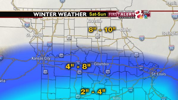 Four to eight inches of snow could fall in parts of mid-MO this weekend. Watch @KOMUnews for the forecast. #mowxpic.twitter.com/sR3djBc0Sn