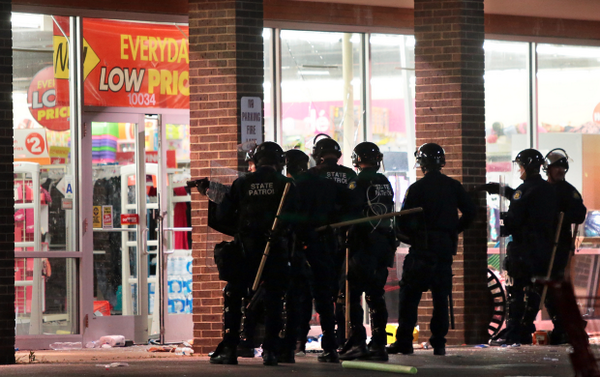 State police in #Ferguson entering a looted store, via @kodacohen:pic.twitter.com/mPtw89bkYx
