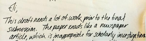 "This paper reads like a newspaper article," not "scholarly." Whatever that means. #thankgodforrevisionspic.twitter.com/cVNcSaLuDL