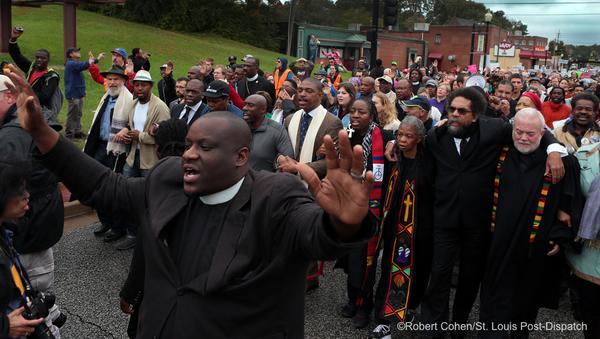 Powerful pic. RT @kodacohen: Clergy march towards #Ferguson PD. #FergusonOctoberpic.twitter.com/EIOxoPB4R4