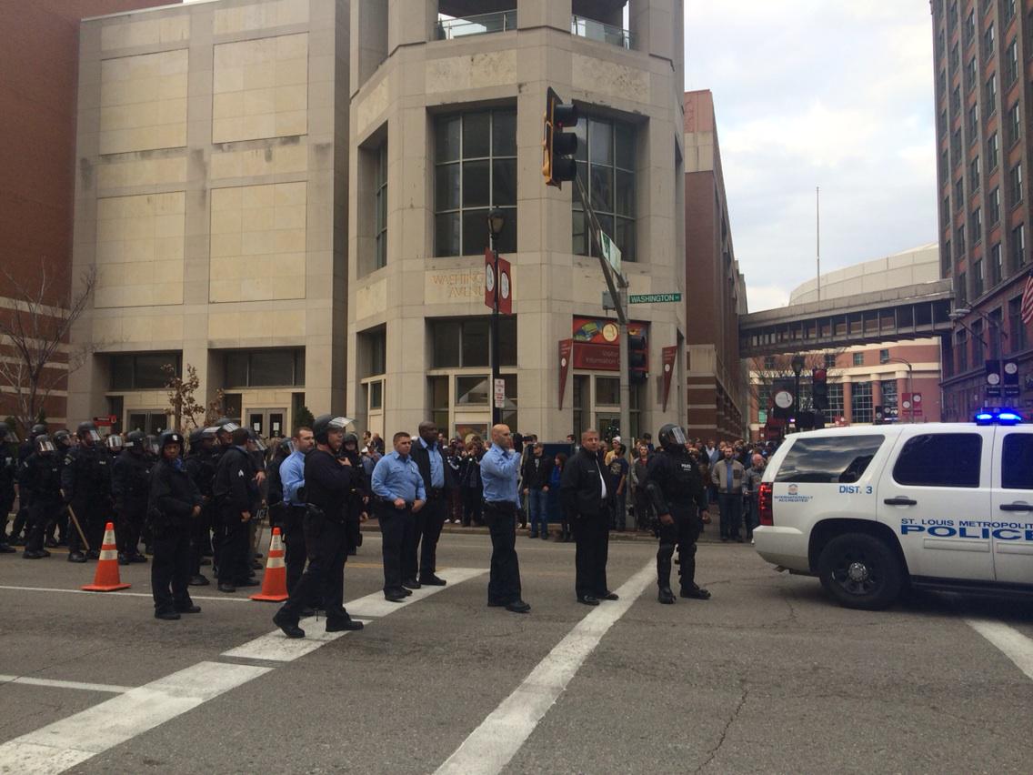 .@MayorSlay's cops look ready for battle. RT @nickpistor: #Stl Police Chief Sam Dotson on the scene. #Fergusonpic.twitter.com/tbLJcZvw7F