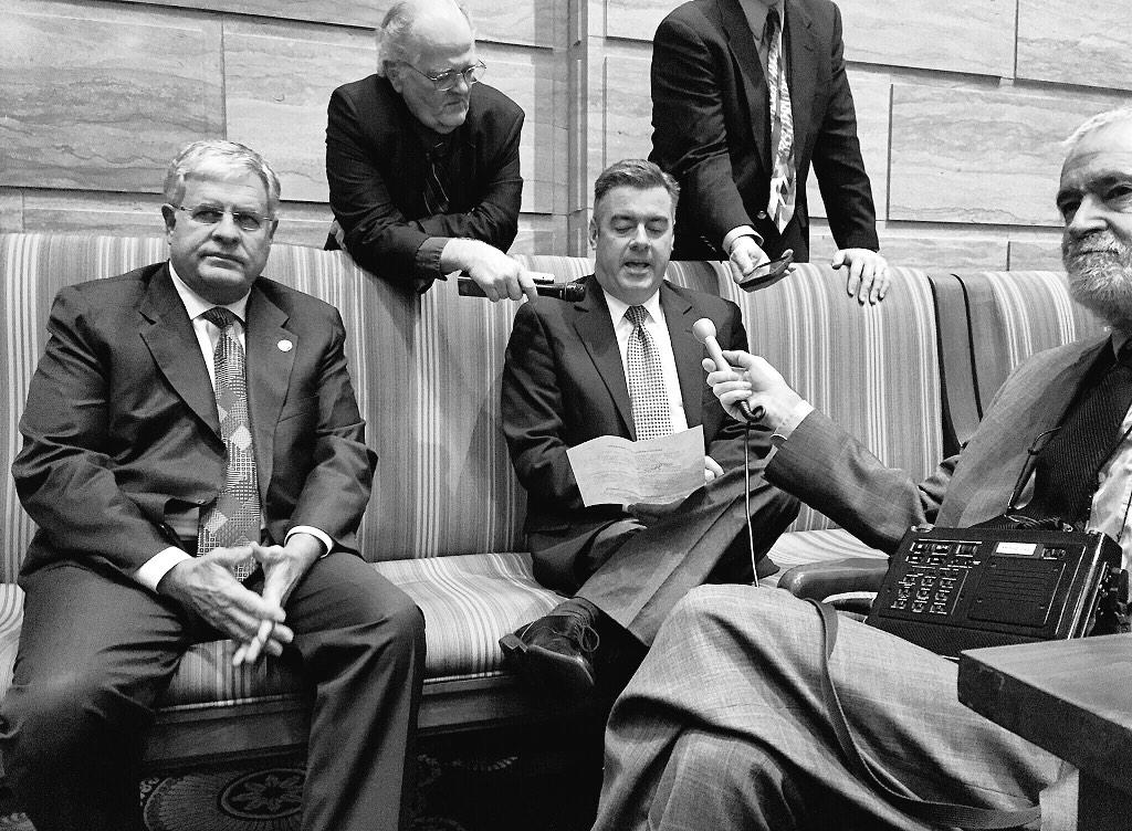 .@senatordempsey meets the press ahead of @GovJayNixon's #MOSOTS. Says he wants to hear talk about partnership #MOLegpic.twitter.com/YCK9T2cFh1