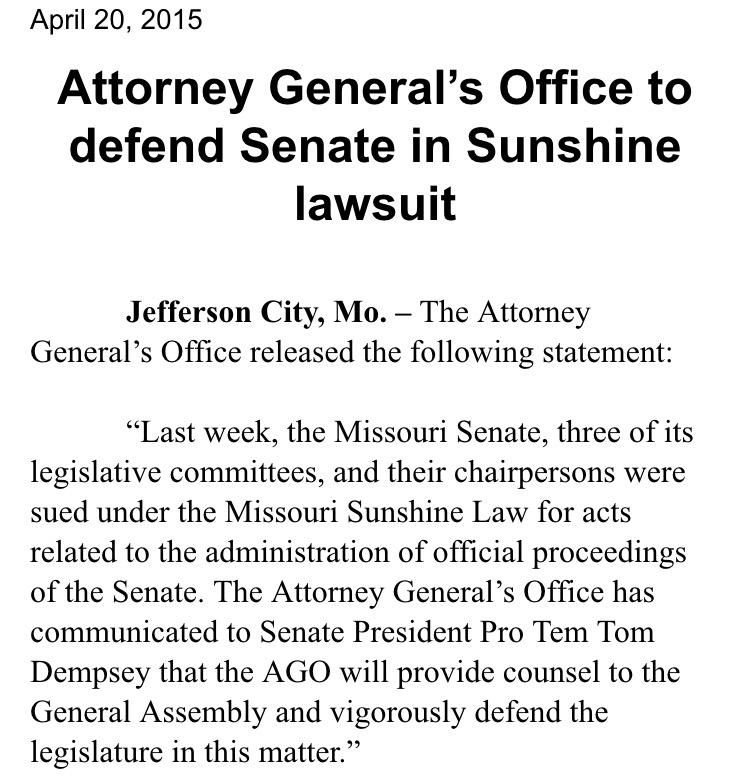 Attorney General @Koster4Missouri says his office will defend the @MissouriSenate from @ProgressMO lawsuit. #MOLegpic.twitter.com/INycj05jPO
