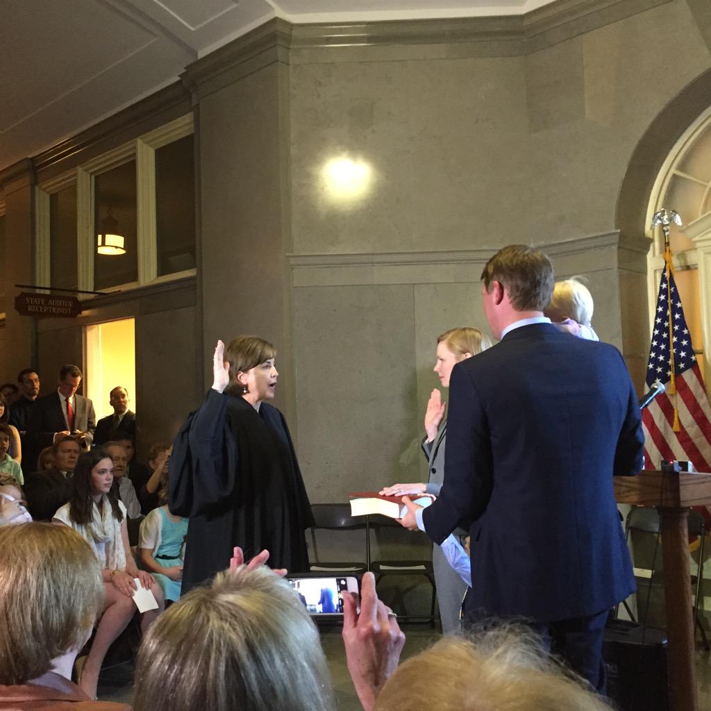 Honeymoon lasted about a minute for @nicolergalloway after her swearing-in. Met the press soon after. #MOLegpic.twitter.com/vti1TvjujX