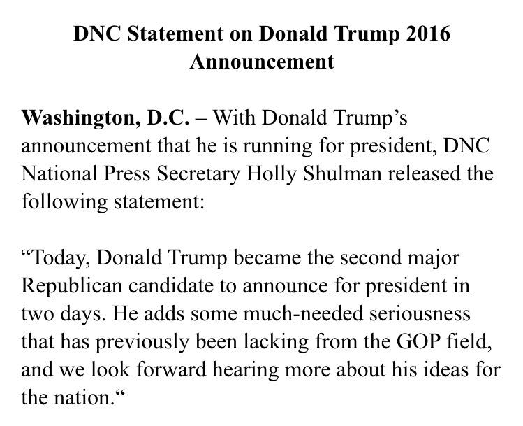 DNC's @HollyShulman trolling hard, says Trump "adds some much-needed seriousness that has previously been lacking…"pic.twitter.com/KsTMP3W08H
