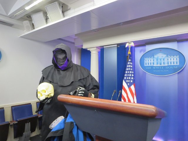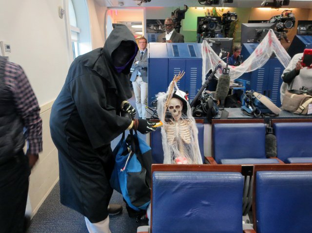 Grim Reaper pays Halloween visit to WH Briefing Room (for all the bad little boys & girls). pic.twitter.com/kWvYvDqCCQ