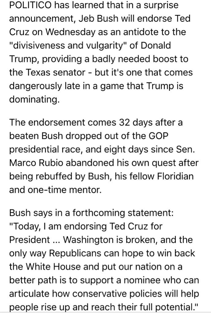 .@jebbush will endorse @tedcruz today, per @politicopic.twitter.com/d4rCGugOMW