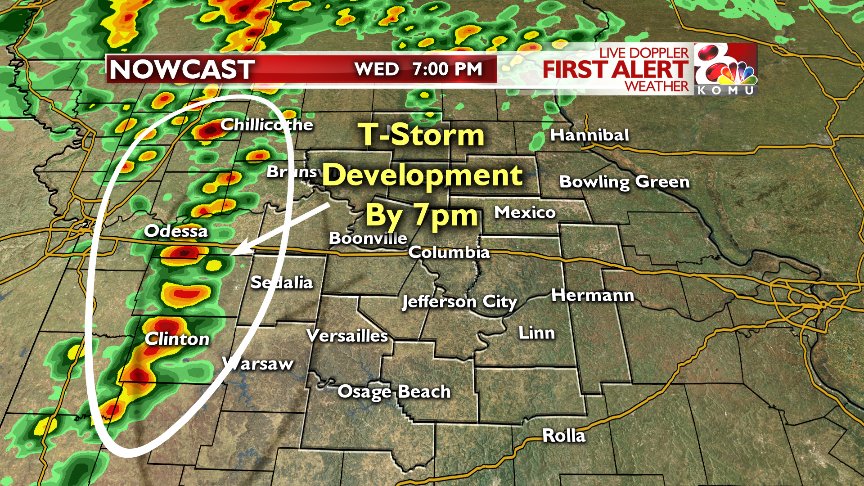 Latest HRRR models has t-storm development over west MO by 7pm #mowx pic.twitter.com/qV60r6xbr5