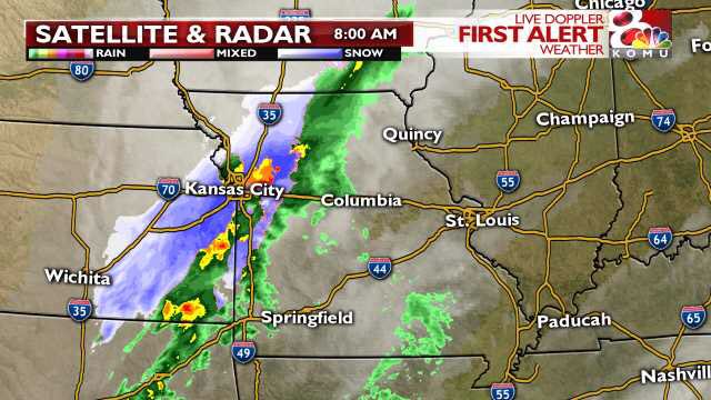 Looks like rain (and snow?😳) is moving into west MO #easter pic.twitter.com/3pNmtuWpyc