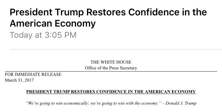 Economic confidence: restored, @WhiteHouse says.pic.twitter.com/cbL2KrimWl