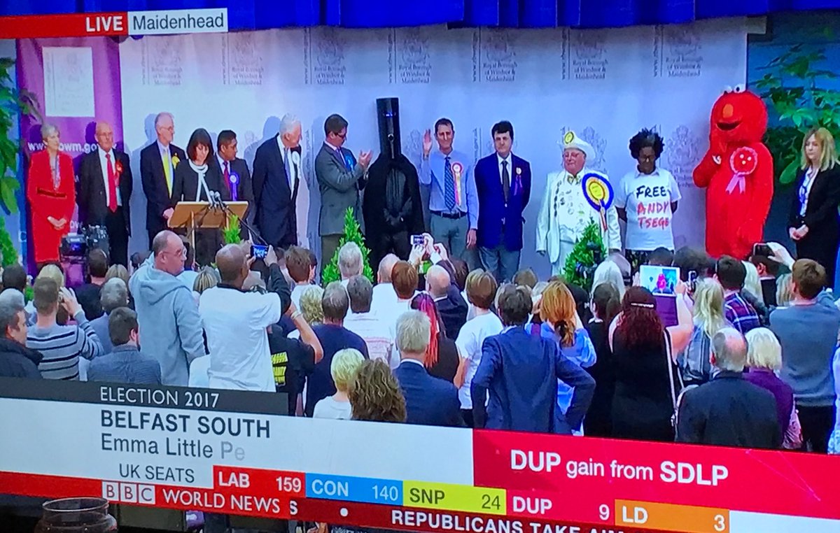 Theresa May, David "Buckethead", and Bobby "Elmo" Smith. And of course some other interesting folks. pic.twitter.com/IJriURsBmZ