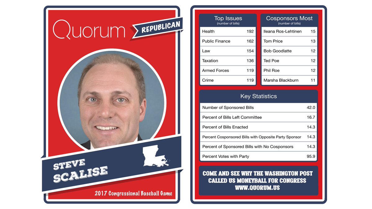 Ahead of the #CongressionalBaseballGame, @QuorumAnalytics put out its annual baseball cards. Here's @SteveScalise: http://blog.quorum.us/play-ball-quorums-congressional-baseball-cards-are-back …pic.twitter.com/nNlm0VUnig