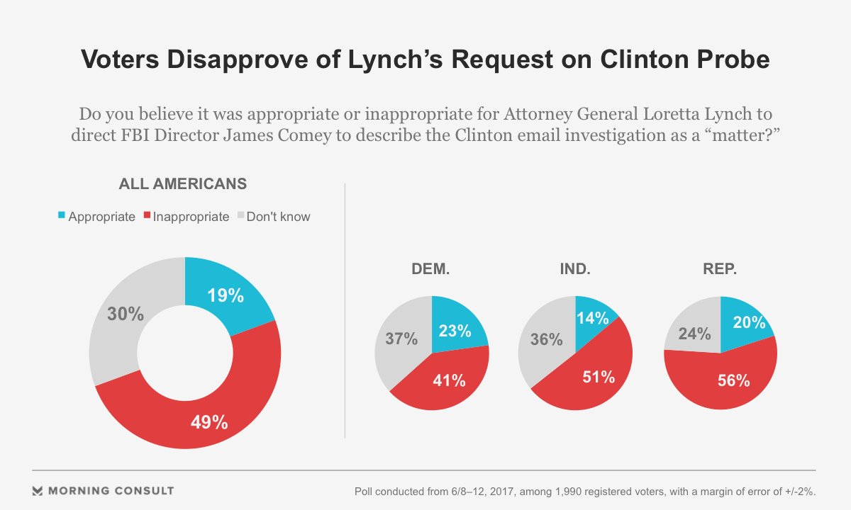 Not even Dem voters think it was appropriate for former AG Lynch to ask Comey to refer to Clinton probe as a matter. https://morningconsult.com/senate-rankings-april-2017/ …pic.twitter.com/ca99mPJvuE