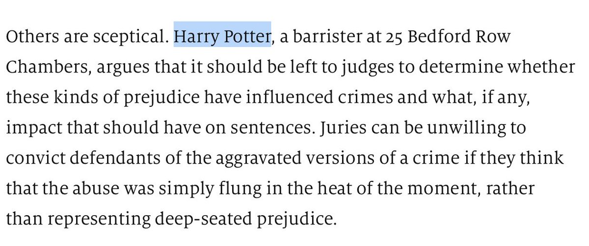 In which @TheEconomist quotes a lawyer named Harry Potter https://www.economist.com/news/britain/21727074-crimes-motivated-racism-can-carry-penalties-four-times-harsh-ordinary-sort-should …pic.twitter.com/lPOPyYihpc