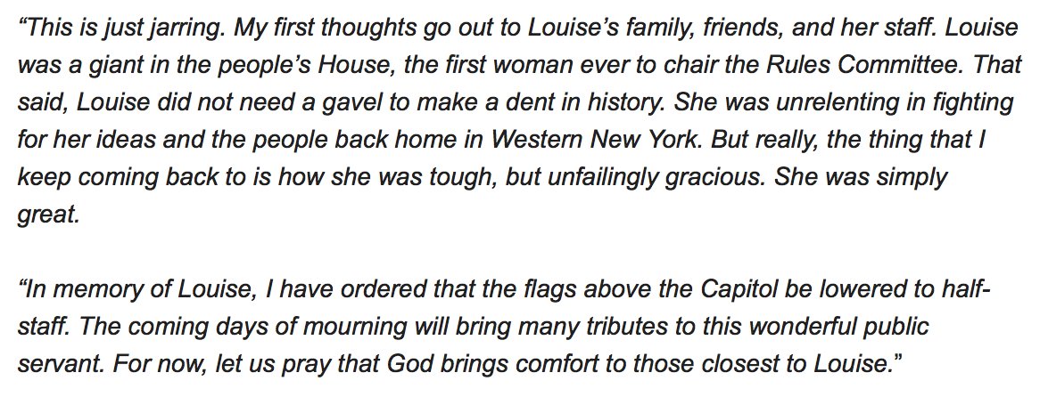 .@SpeakerRyan on @louiseslaughter: "Louise did not need a gavel to make a dent in history.”pic.twitter.com/c5hxZgYQkK