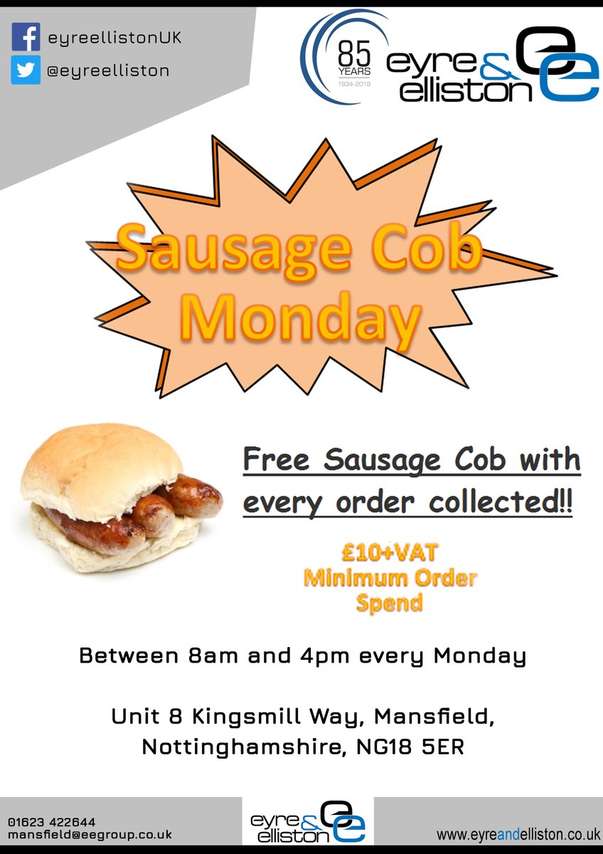 Pop down to Mansfield branch for Sausage Cob Mondays between 8am-4pm! https://www.eyreandelliston.co.uk/branches/mansfield …