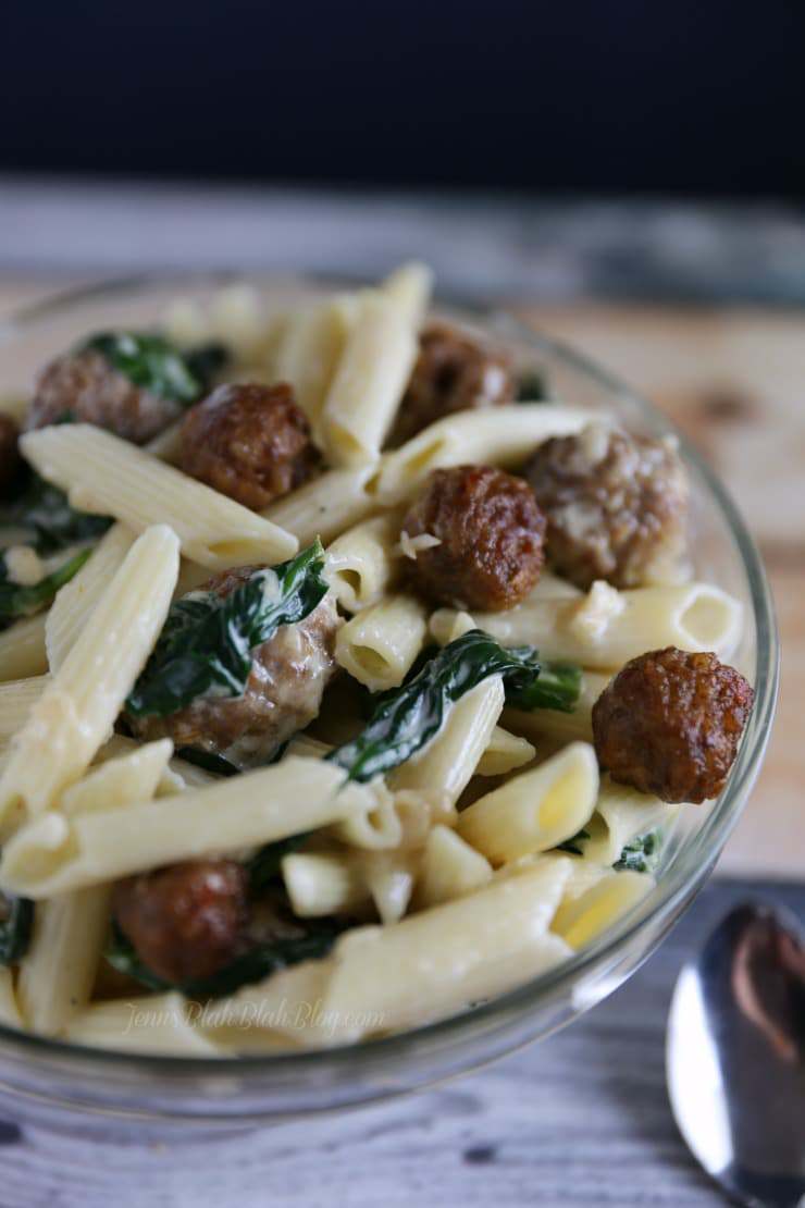 Yummy Sausage Meatball Spinach Alfredo Recipe! Check it out via
