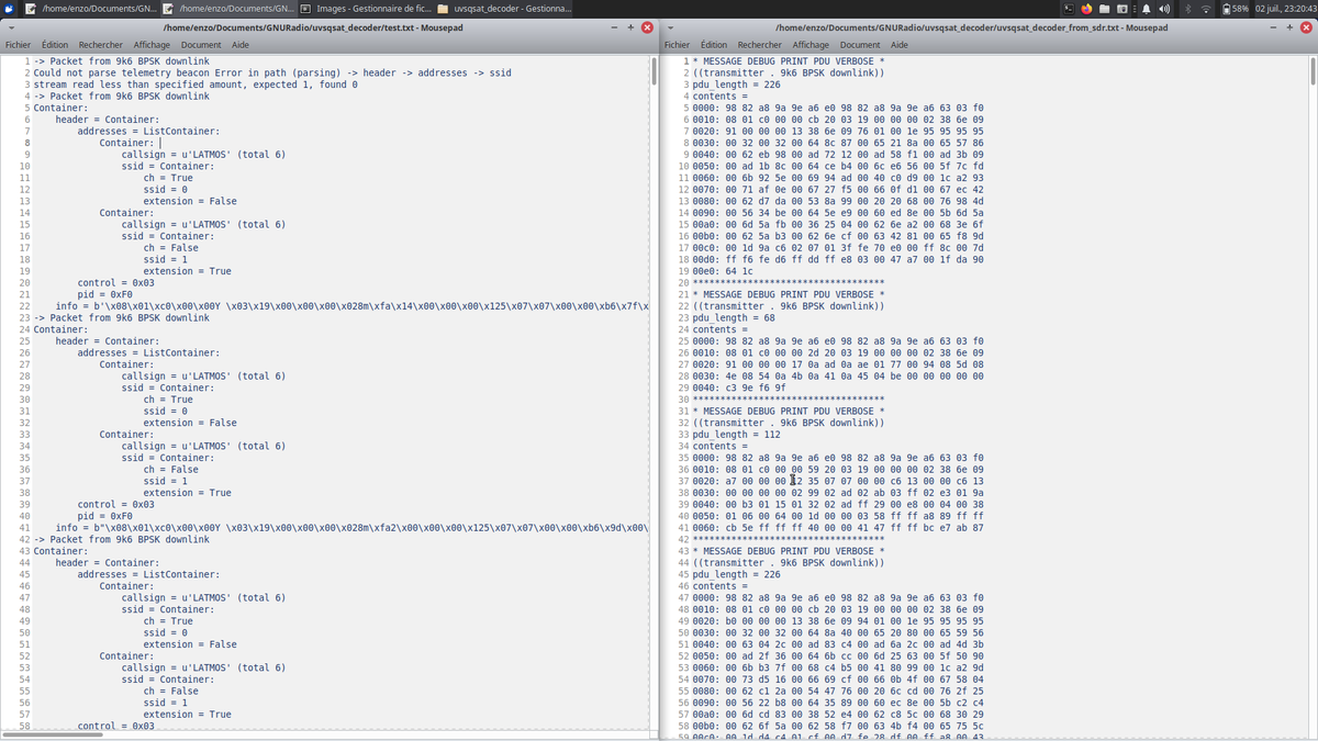 QFH 437MHz (à bout de bras sur un parking...), #GQRX et#GnuRadio pour tester le décodage avec un prog simple Prochaine étape : rendre tout ça déployable et automatique !pic.twitter.com/yjUpfnJfHC