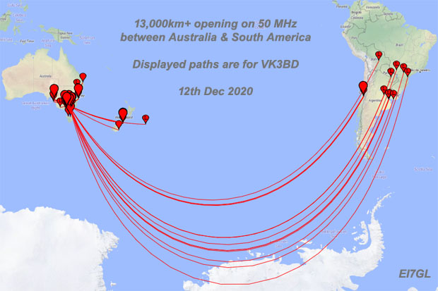 Remarkable 13,000 km opening on 6-metres between Australia and South America - 12th Dec 2020... https://ei7gl.blogspot.com/2020/12/remarkable-13000-km-opening-on-6-metres.html …pic.twitter.com/kE5ukT08Yp