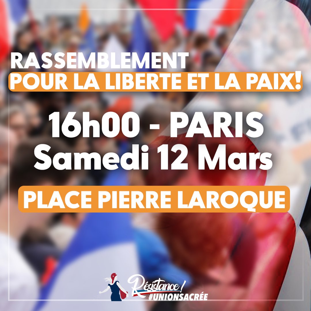 Et si on passait à une nouvelle phase de résistance ?! Défendons la France ! Rdv 12 mars 16h Paris Place Pierre Laroque