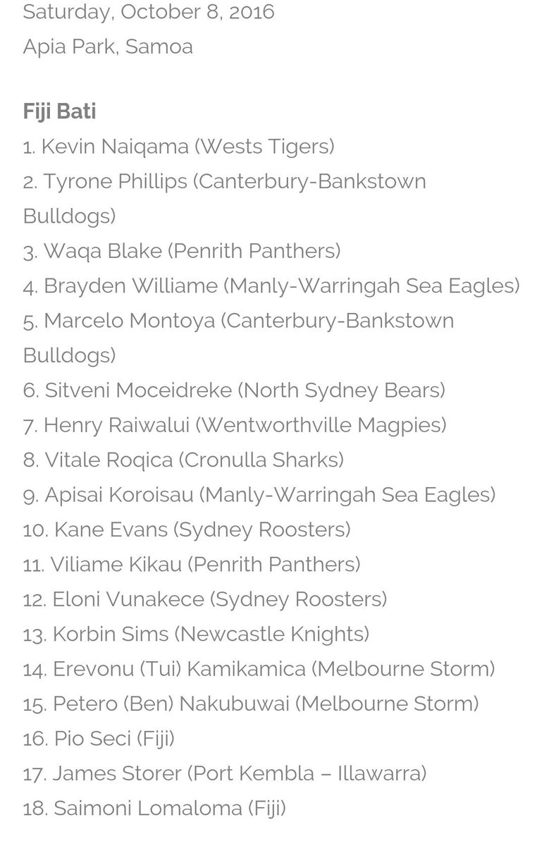 Fiji Bati team vs Toa Samoa side finalised/altered.pic.twitter.com/ELzqAjPW72