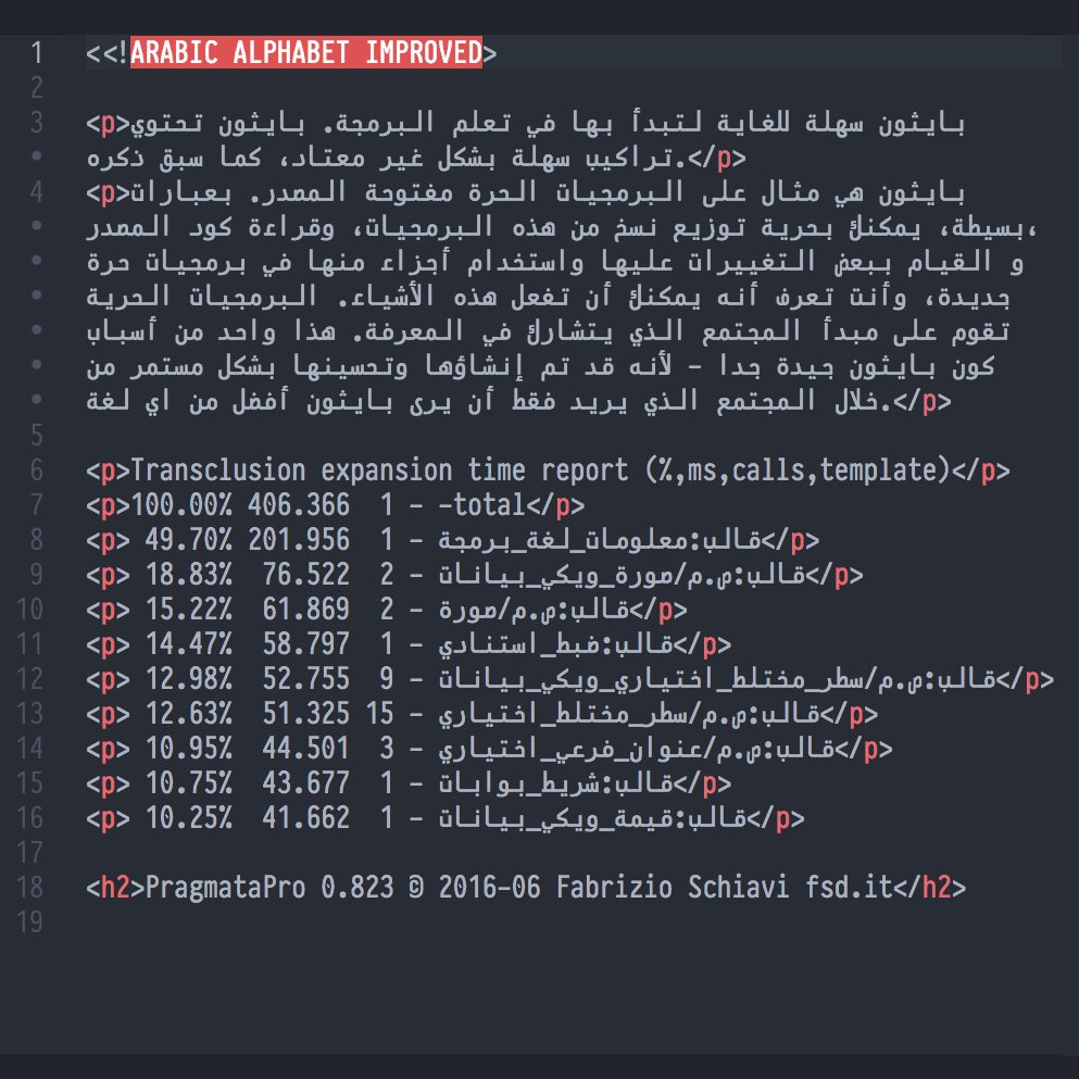 Fabrizio Schiavi@fabrizioschiavi#PragmataPro 0.823 will be released this week Arabic alphabet was improved4:42 PM · Jun 28, 2016·Twitter Web Client5 Likes