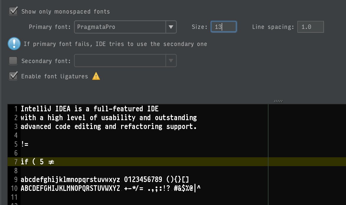weird, in the settings preview I see ligatures SOMETIMES - but not in the main editor. #weird