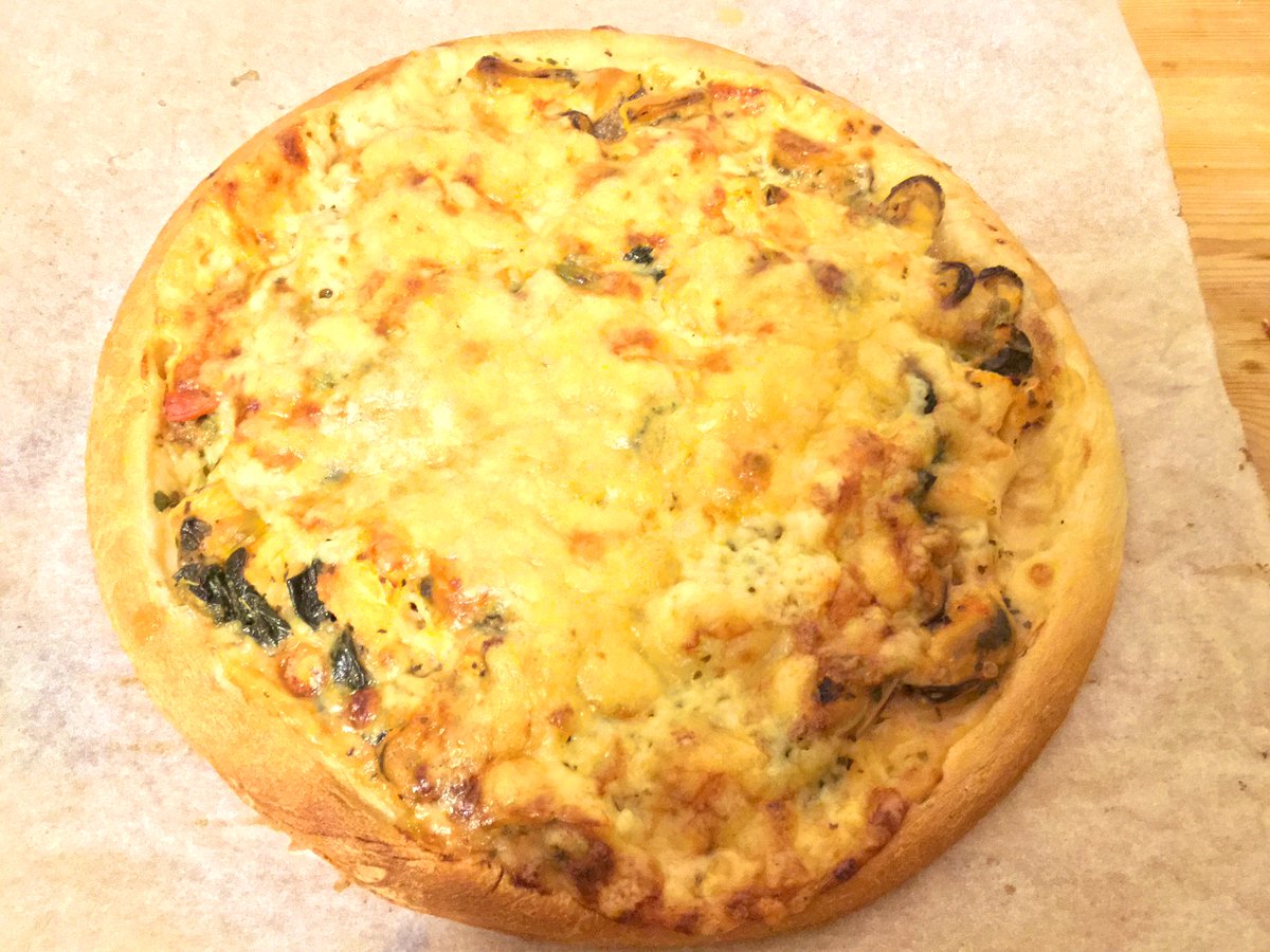 イカとムール貝のピザpic.twitter.com/0BJ5XSUiY2