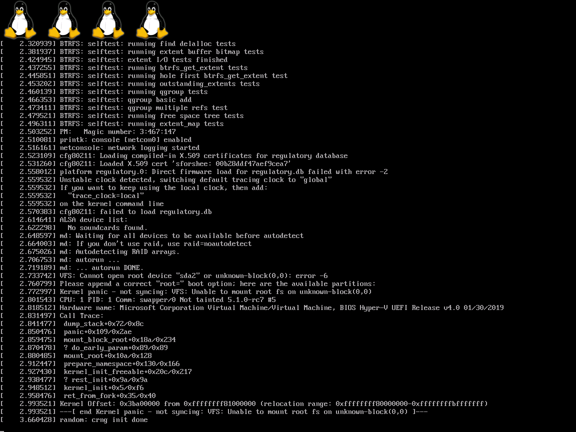 あらゆる指定方法を試しているが、カーネルがrootfsをマウントできないpic.twitter.com/pwg3gQFG8L