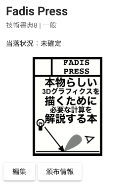 技術書典8にサークル「Fadis Press」として参加申込をしました! #技術書典 https://techbookfest.org/event/tbf08 pic.twitter.com/IAOdEP72c8