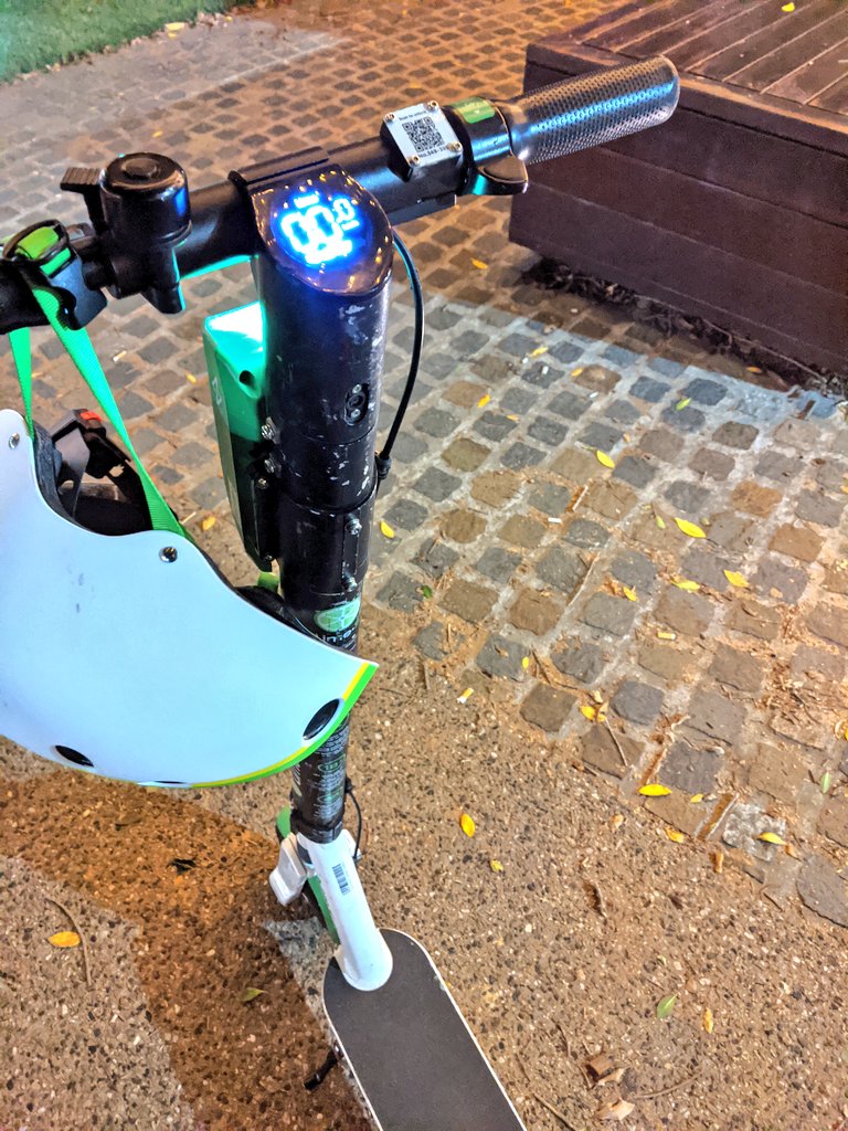 電動キックボードの共有サービス。街中に沢山転がっててスマートフォンでロック解除して乗って目的地についたらロックして距離分の料金払って乗り捨てる