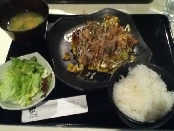 今日のお昼はお好み焼きにご飯がついてきて大阪を感じたpic.twitter.com/xpvH1tXG
