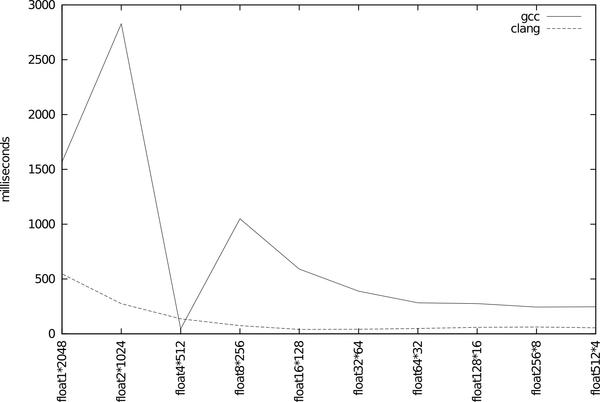 @fadis_ gcc が float4 だけめっちゃパフォーマンス良いのは SSE2 の自動ベクタライズが効いてる?