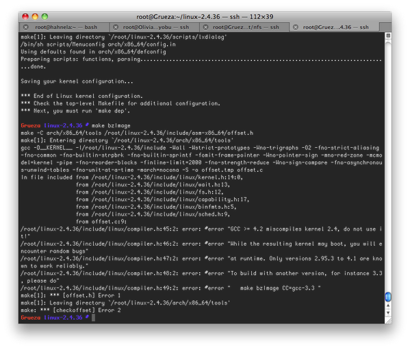 linux-2.4.36で gcc-4.3以降で正しくビルド出来ない不具合が修正されたと聞いて わくてかしながらgcc-4.7.3でビルドを試みた結果pic.twitter.com/4eNGANsYiq