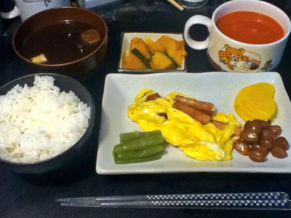 高野豆腐が残念なことになったからメインをポークたまごで置き換えpic.twitter.com/ywdL7v8GX9