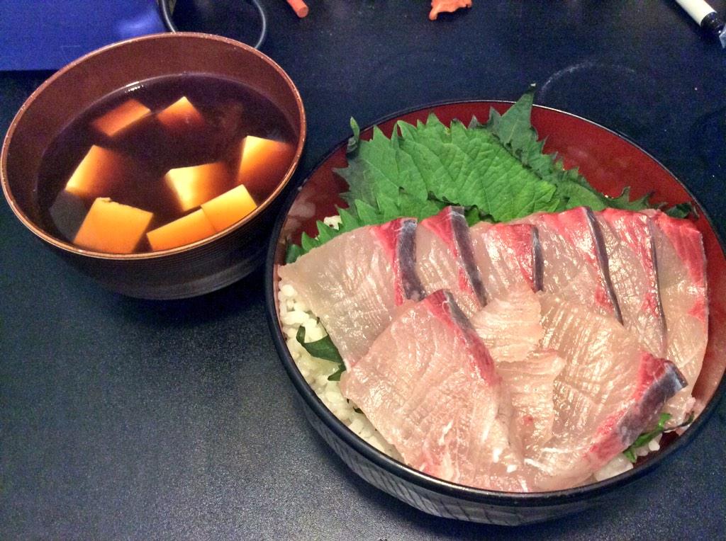 @fate_fox 豆腐の味噌汁 80円 酢飯 80円 大葉 40円 はまち 400円 あわせて600円 (ぼそ