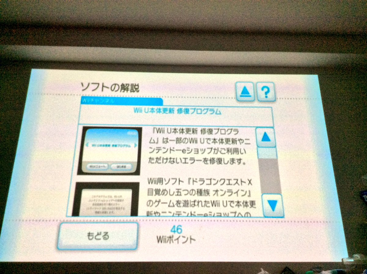WiiUさんが 2013年4月以前にドラクエやった本体が本体更新できなくなる不具合を、Wiiモードで起動中にWiiのショッピングチャンネルから受け取った修復プログラムで乗り越えるとかいう豪快な方法で解決していたことに気がついたpic.twitter.com/I0fY6QTjzQ