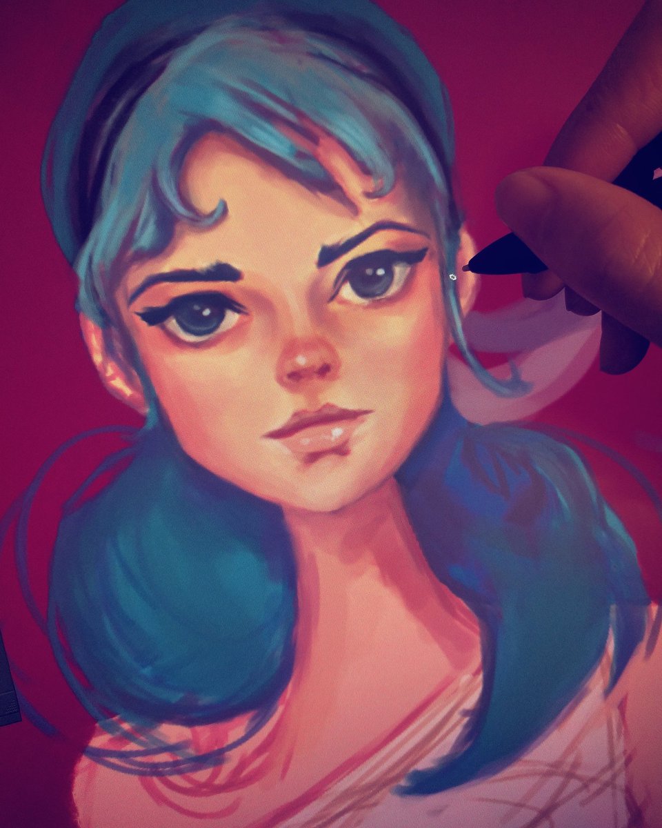 An experiment with blue hair. #digitalart #painting #illustration #cintiq #wacom #art #rough #portraitpic.twitter.com/kcpDQzpBBS