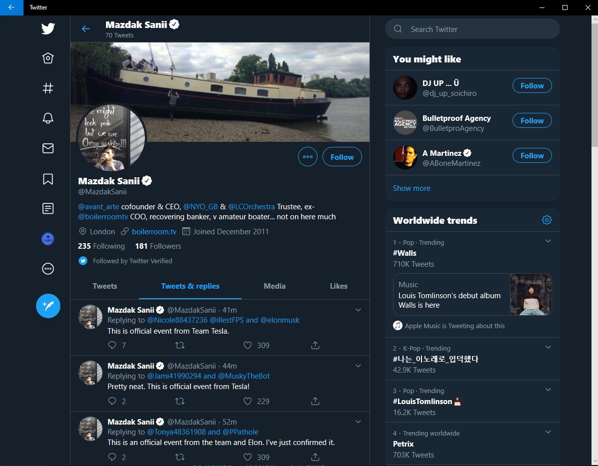 @Twitter /@verified actually verified this account. 180 followers. Been tweeting nothing but responses to fake accounts that are posting about fake "Tesla Crypto" giveaways. cc:@elonmusk@jack@TwitterSupportpic.twitter.com/8Nk5gxvtyA