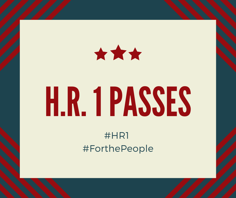 The House of Representatives passes #HR1! The #ForthePeople Act includes critical reforms that will expand and protect the registration and voting process for all Americans! Now onto the Senate.pic.twitter.com/vgPn25NJIy
