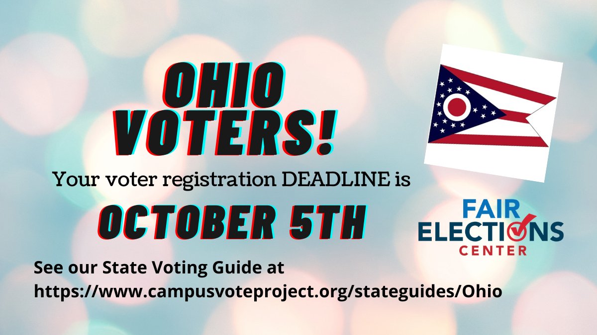 #Ohio voters, TODAY is your registration deadline! Act now and sign up! Our State Voting Guide has info and links to get you started https://www.campusvoteproject.org/stateguides/ohio …pic.twitter.com/P8lIsiSBJW